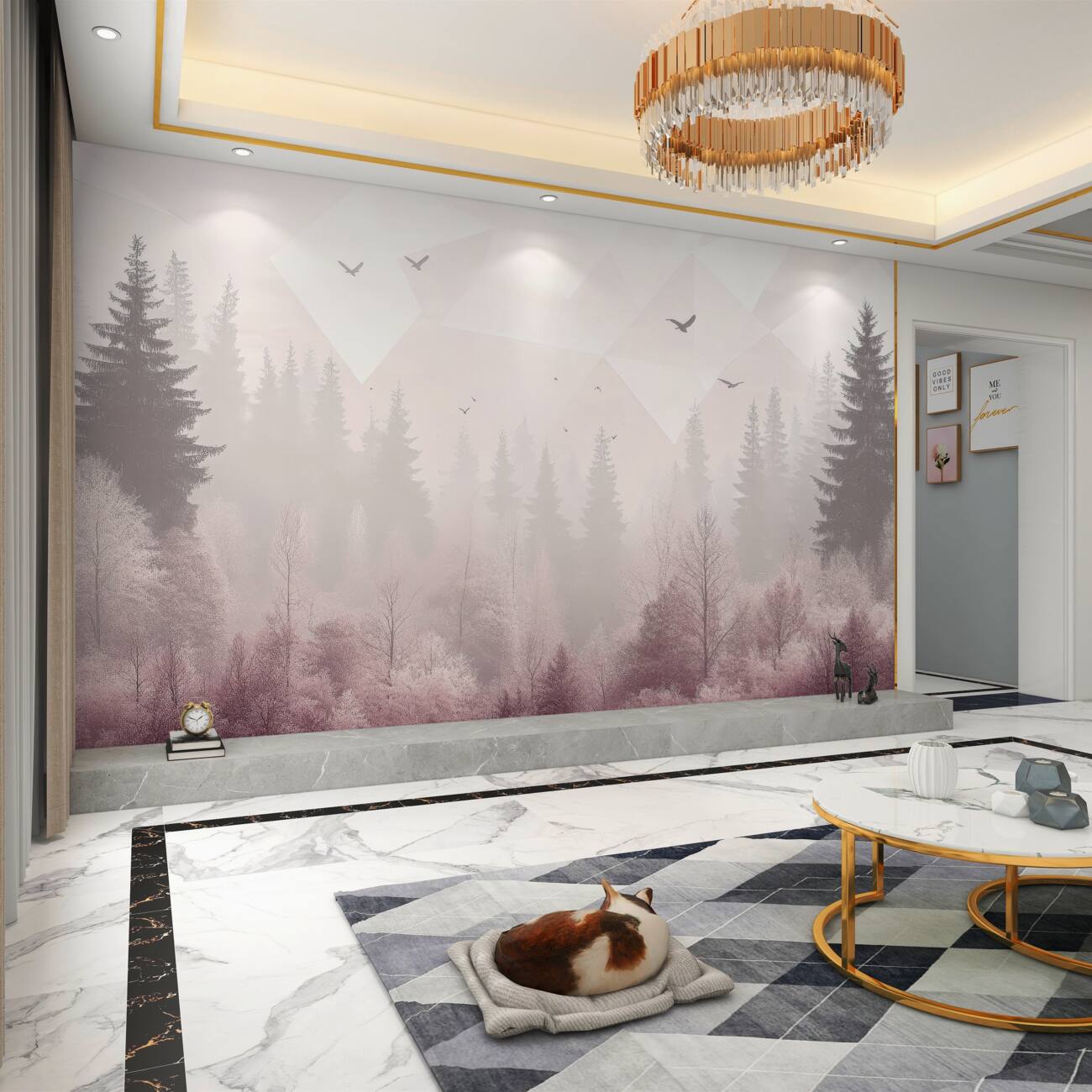 Tapeta Fototapeta Prosty różowy mglisty las (artykuł u14215 ) z kategorii Fototapety Las