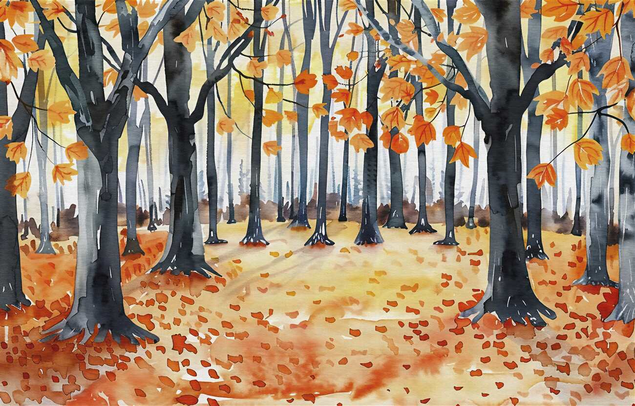 Tapeta Fototapeta Rysowanie jesiennego lasu (artykuł u14421 ) z kategorii Fototapety Las