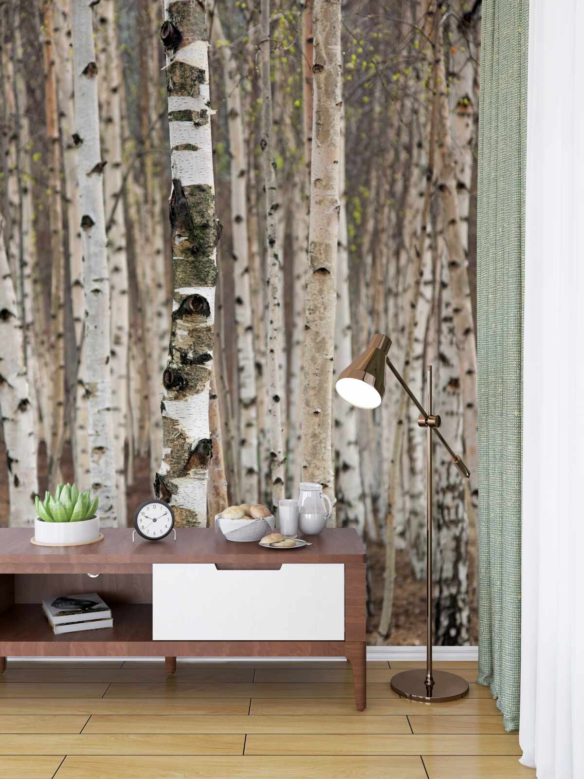 Tapeta Fototapeta Słupy brzozowe w lesie (artykuł a97638 ) z kategorii Fototapety Las