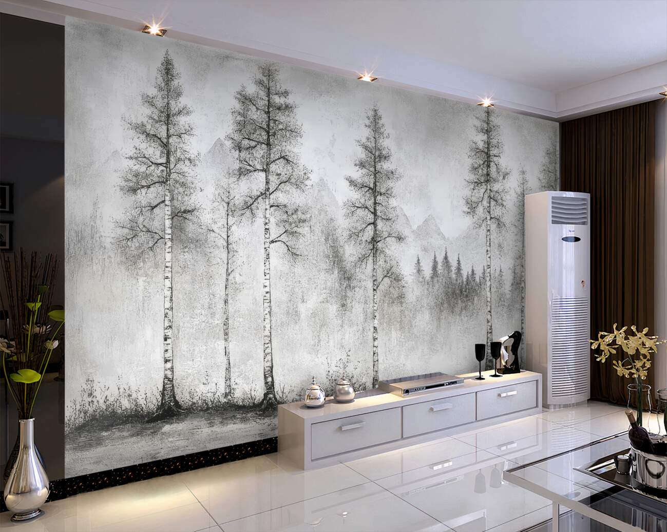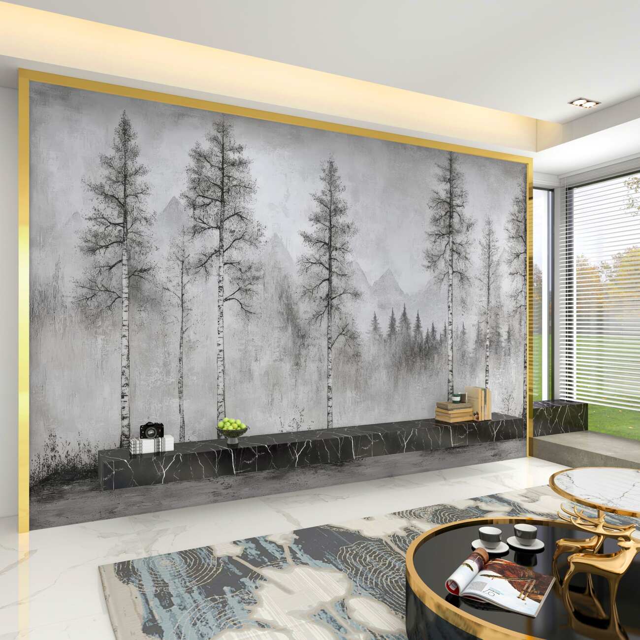 Tapeta Fototapeta Wysokie drzewa we mgle (artykuł u14329 ) z kategorii Fototapety Las