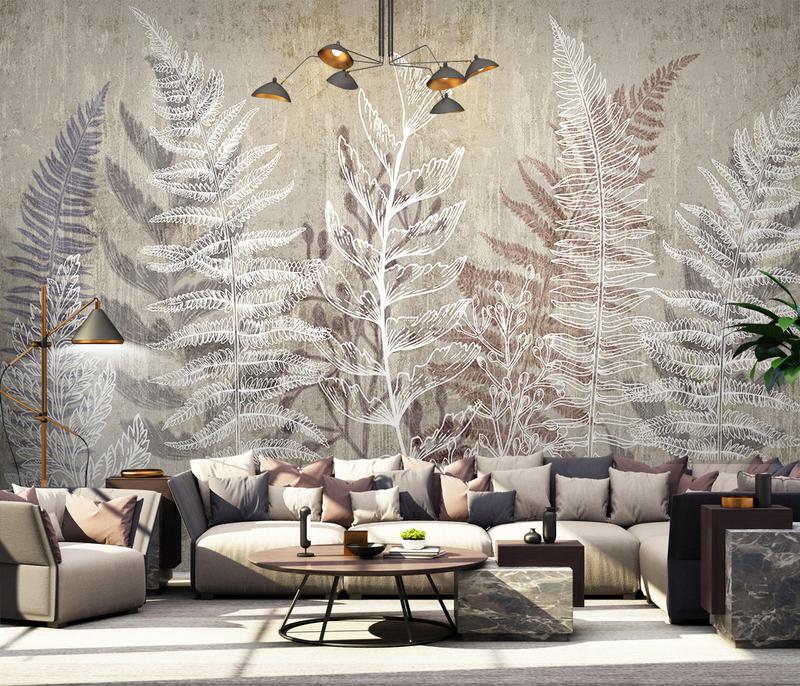 Tapeta Fototapeta bielone farnie szaro-beżowe (artykuł a248 ) z kategorii Fototapety Liście