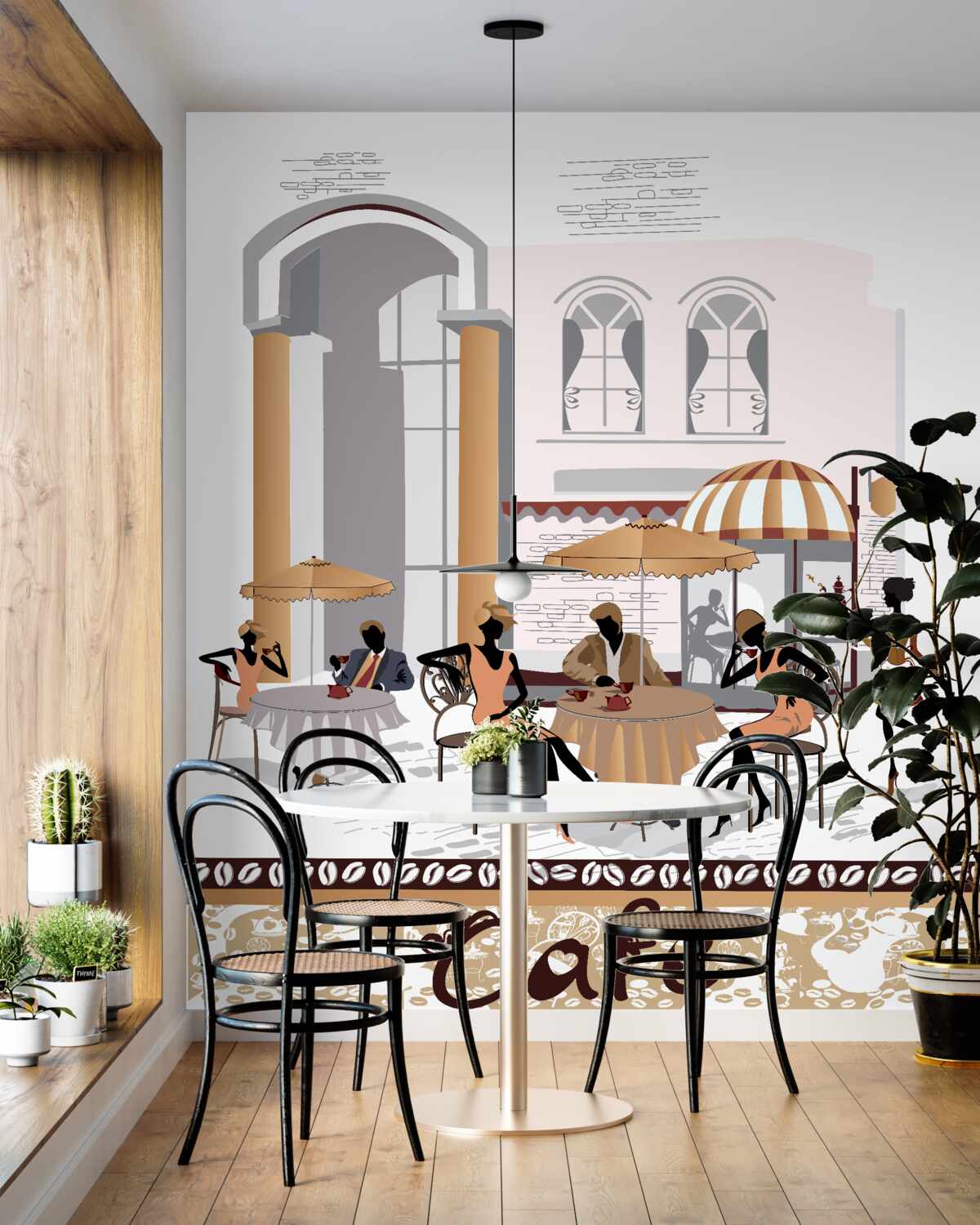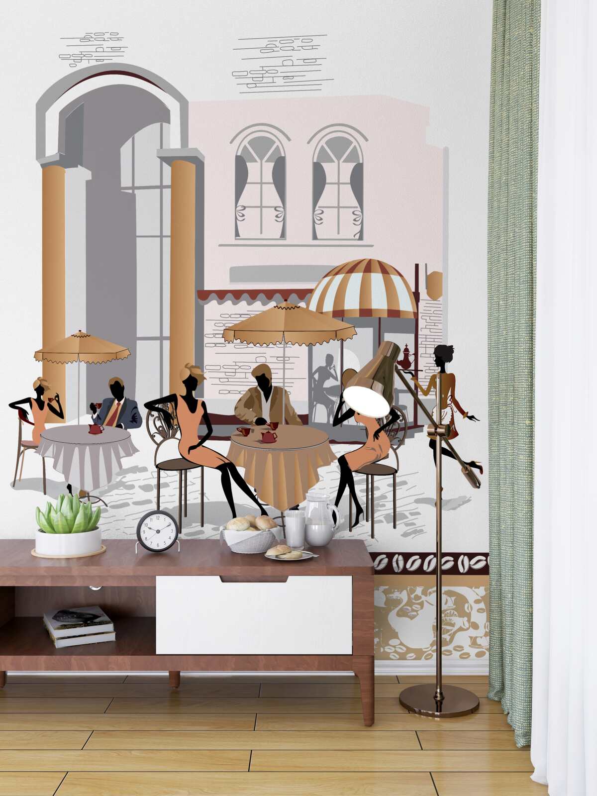 Tapeta Fototapeta Mężczyźni i kobiety w kawiarni (artykuł a91489 ) z kategorii Fototapety Ludzie