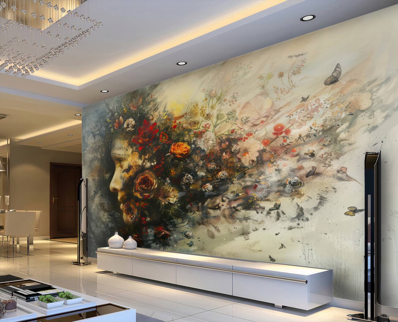 Tapeta Fototapeta Obraz dziewczyny z abstrakcją kwiatów (artykuł u14199 ) z kategorii Fototapety Ludzie