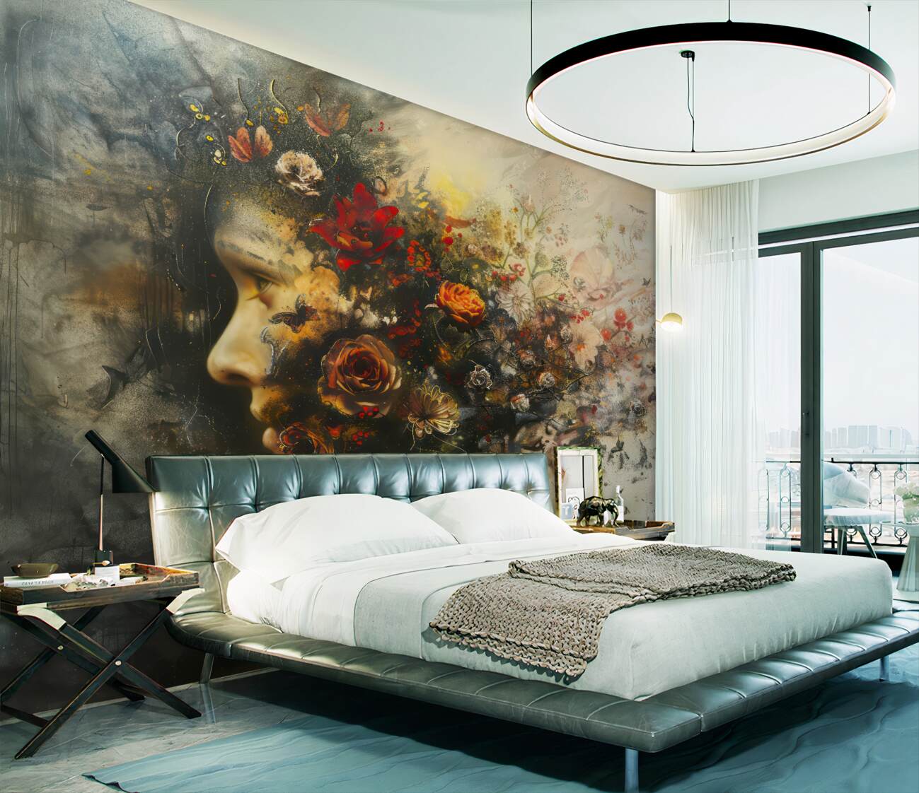 Fototapeta Obraz dziewczyny z abstrakcją kwiatów