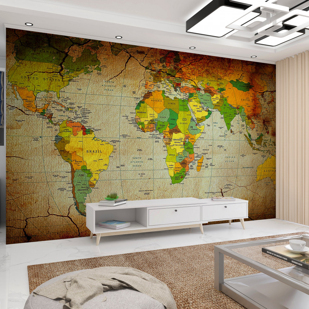 Tapeta Fototapeta geograficzna mapa świata (artykuł a89924 ) z kategorii Fototapety Mapy Świata