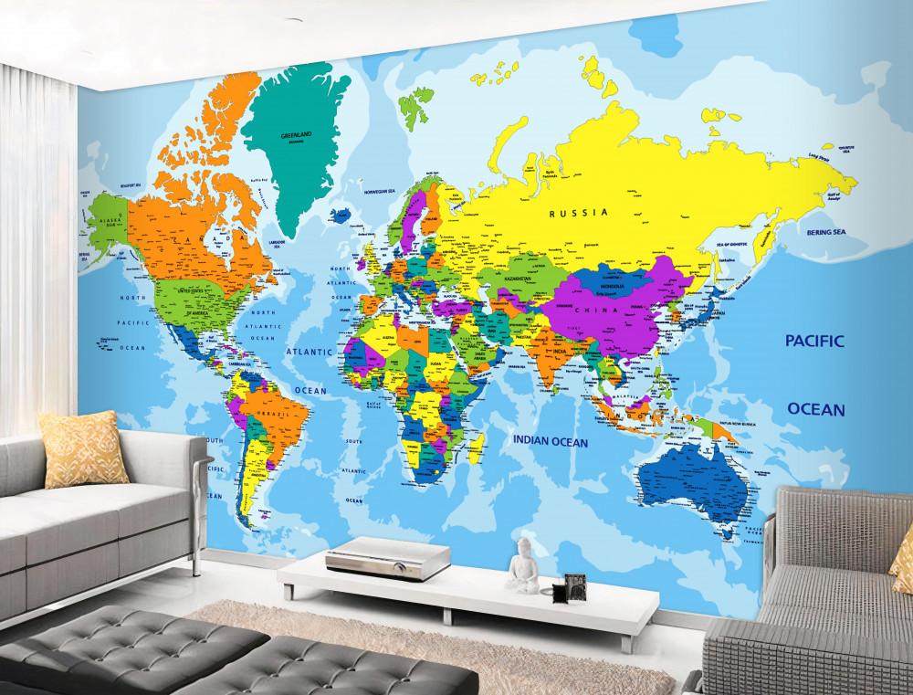 Tapeta Fototapeta geopolityczna mapa świata (artykuł a92269 ) z kategorii Fototapety Mapy Świata
