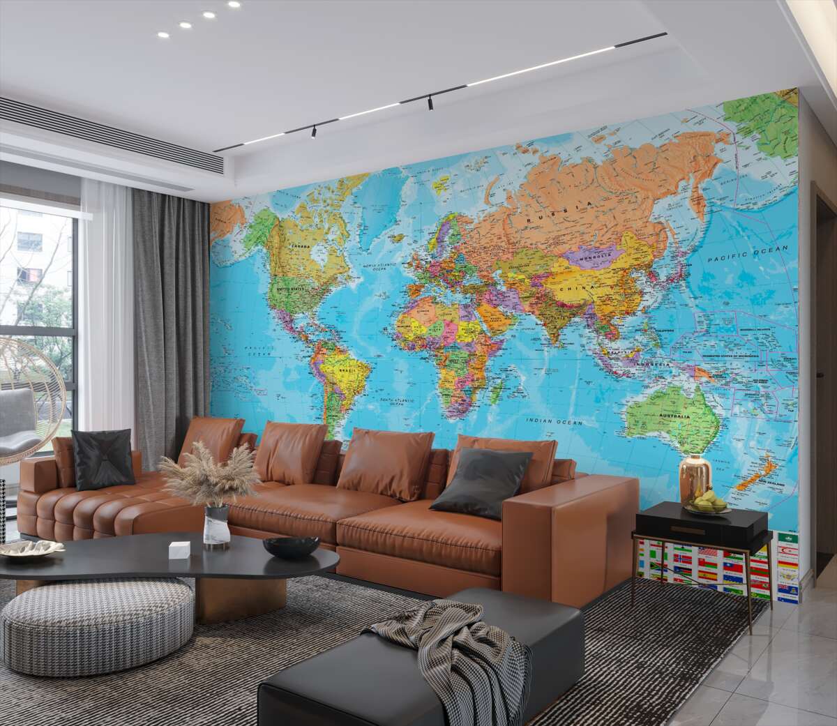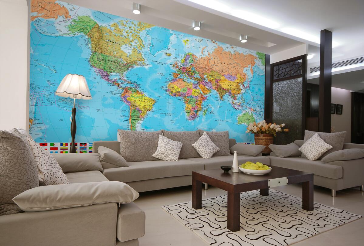 Tapeta Fototapeta Mapa polityczna świata z flagami (artykuł a98907 ) z kategorii Fototapety Mapy Świata