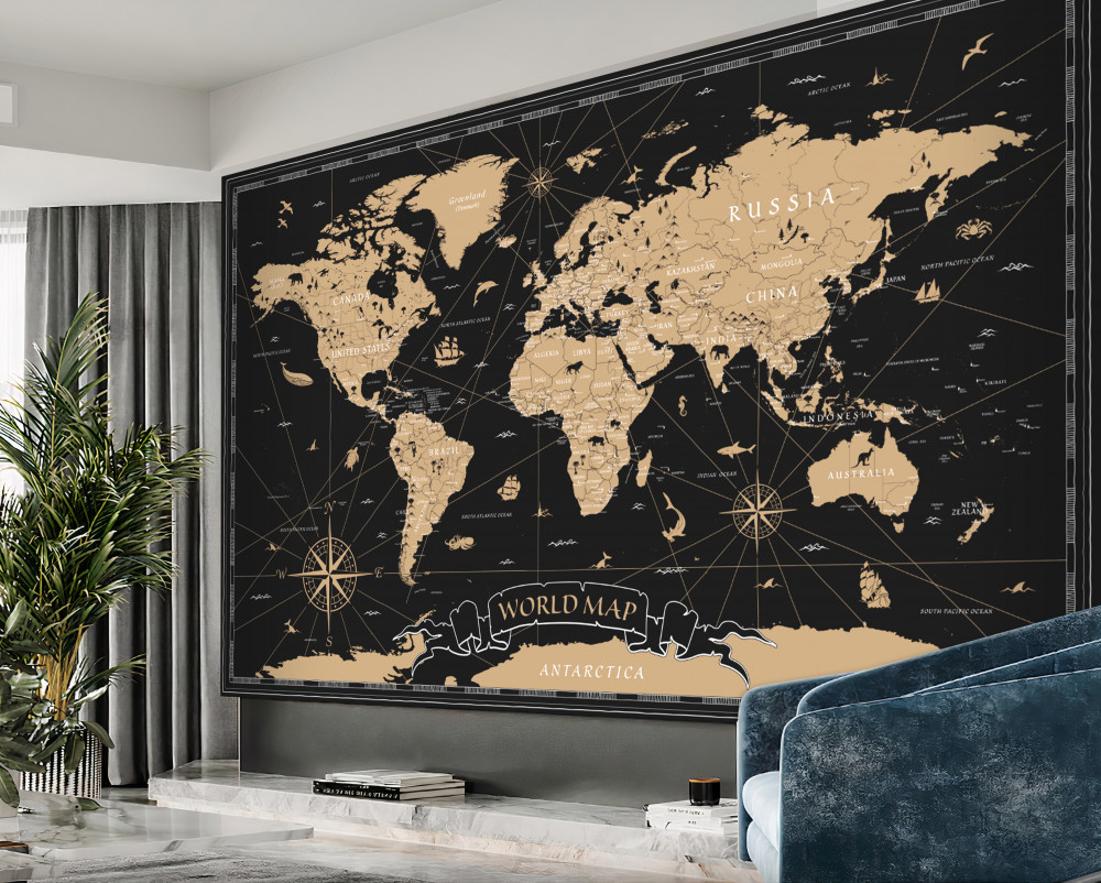Tapeta Fototapeta mapa świata na czarnym tle (artykuł a92619 ) z kategorii Fototapety Mapy Świata