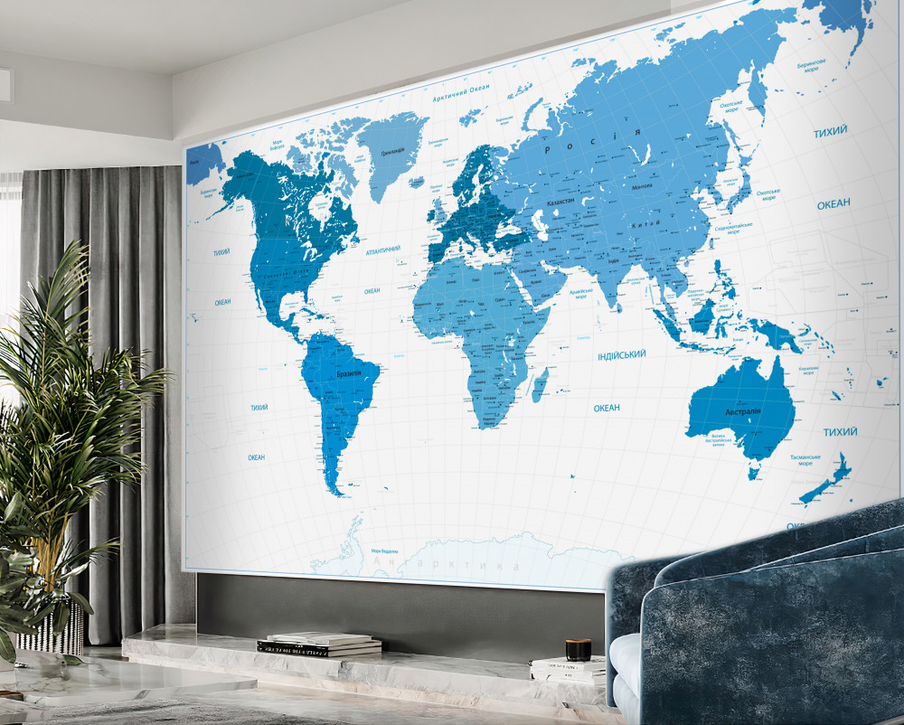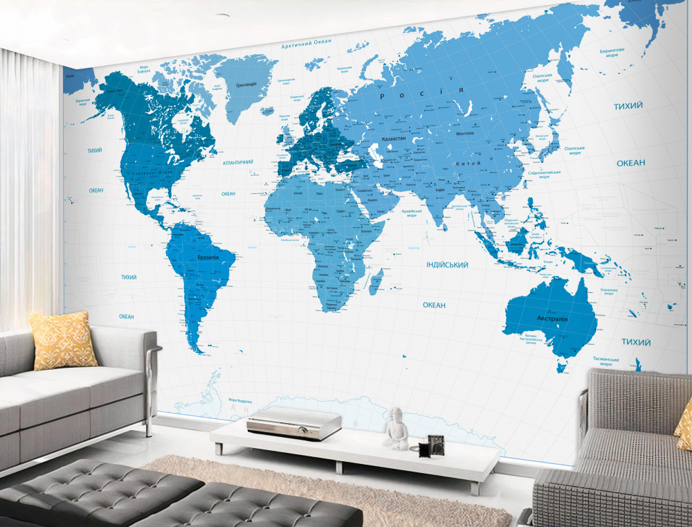 Tapeta Fototapeta mapa świata w kolorze niebieskim (artykuł a91525 ) z kategorii Fototapety Mapy Świata