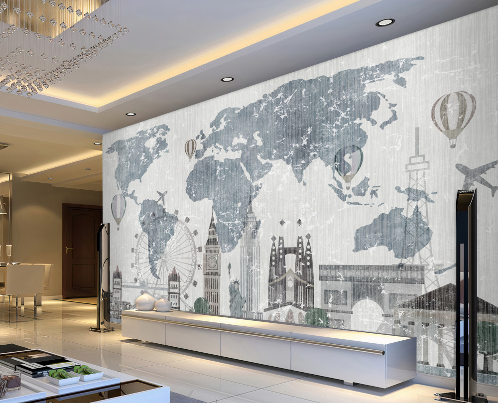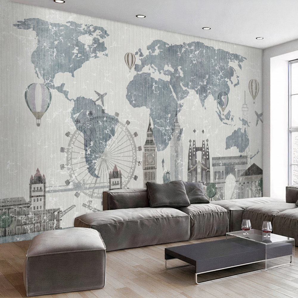 Tapeta Fototapeta mapa świata z zabytkami Londynu (artykuł a90209 ) z kategorii Fototapety Mapy Świata