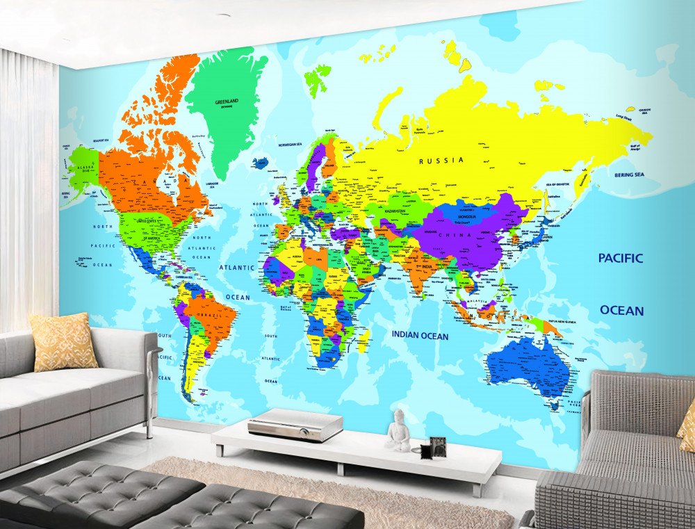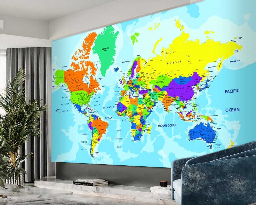 Tapeta Fototapeta polityczna mapa świata (artykuł a91491 ) z kategorii Fototapety Mapy Świata