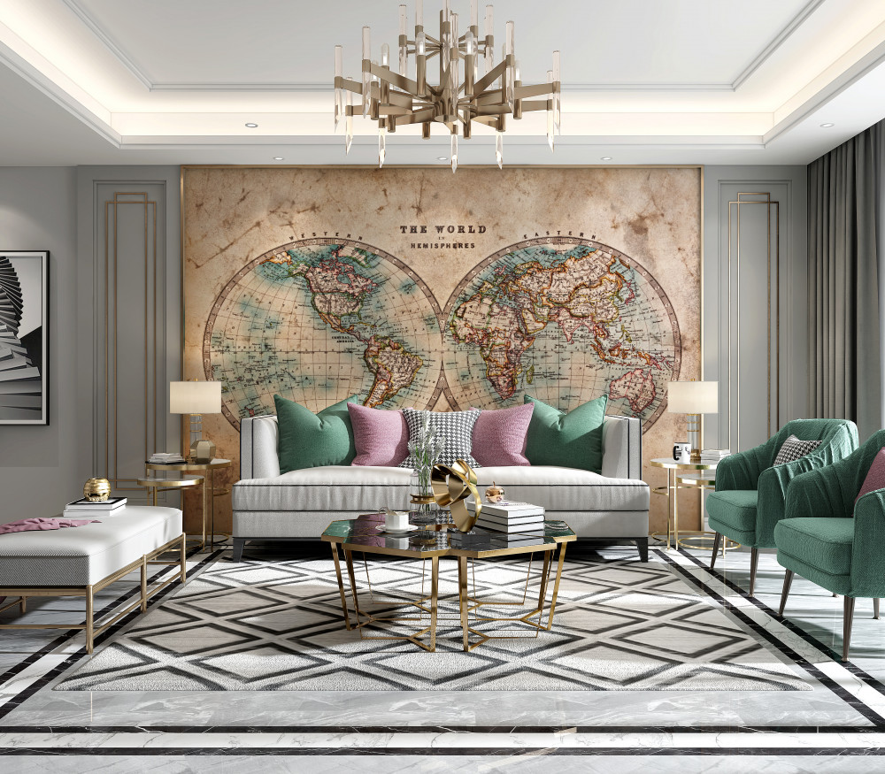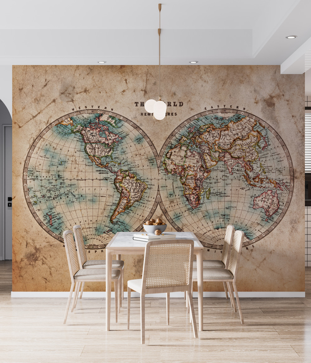 Tapeta Fototapeta stara mapa dwóch półkul (artykuł a92627 ) z kategorii Fototapety Mapy Świata