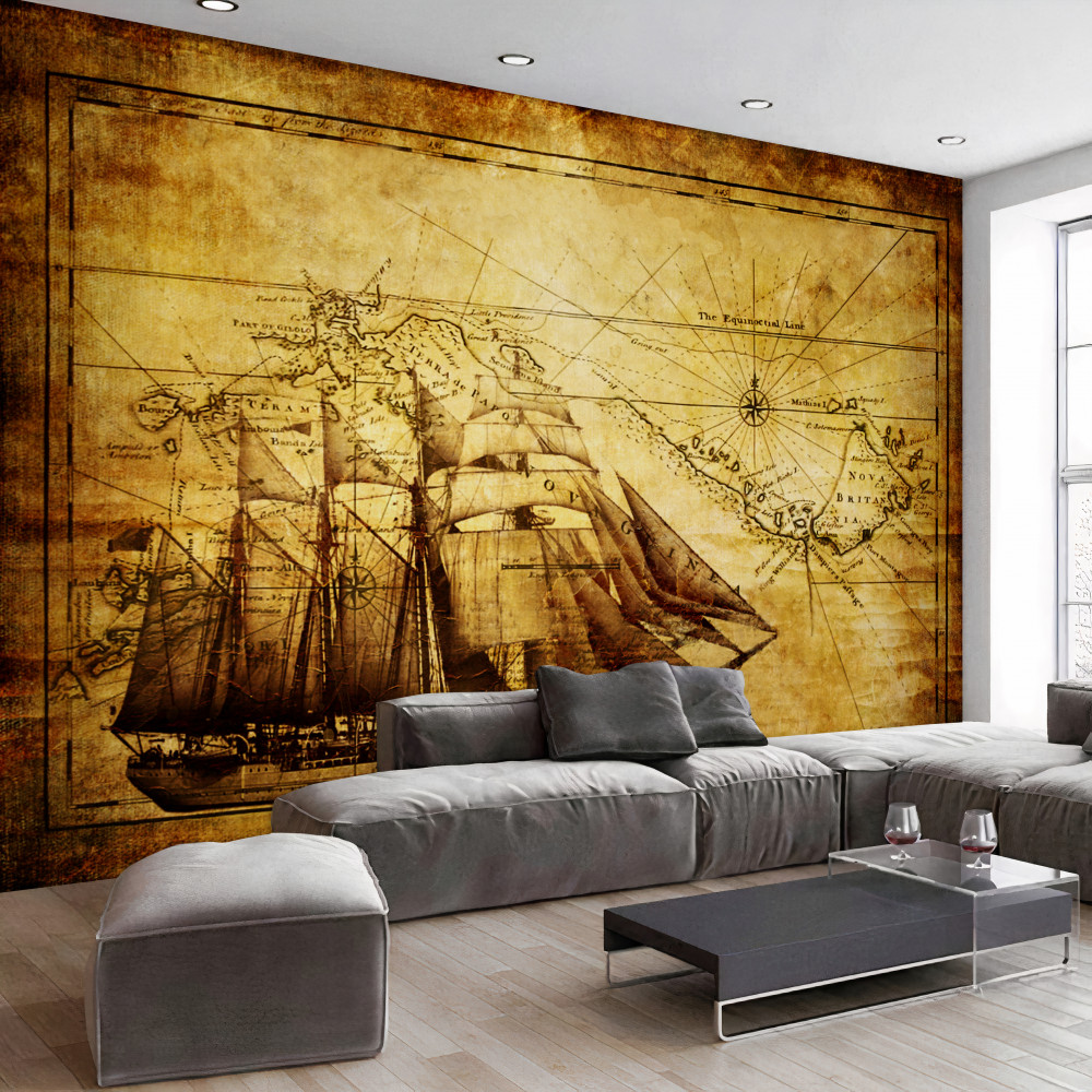 Tapeta Fototapeta statek z żaglami na papirusie (artykuł a90673 ) z kategorii Fototapety Mapy Świata