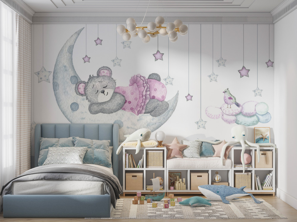 Tapeta Fototapeta słodki miś na księżycu (artykuł a89869 ) z kategorii Fototapety dla Chłopców