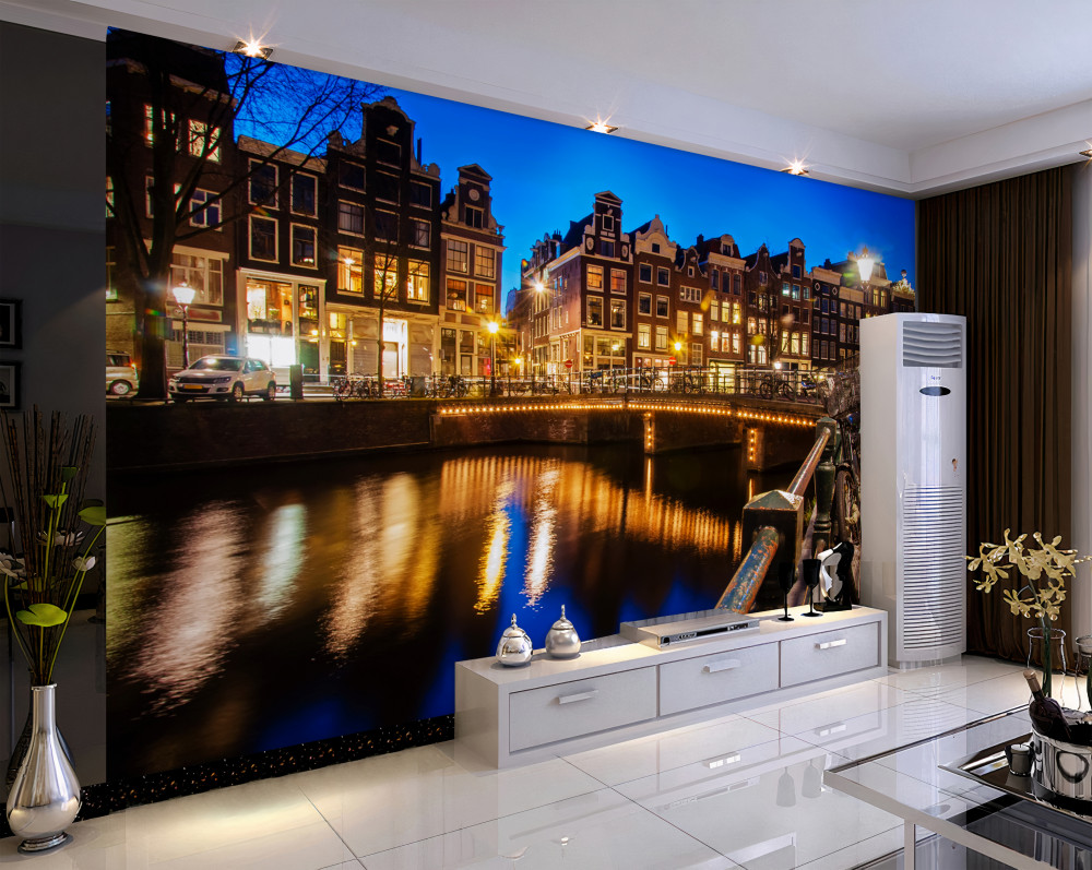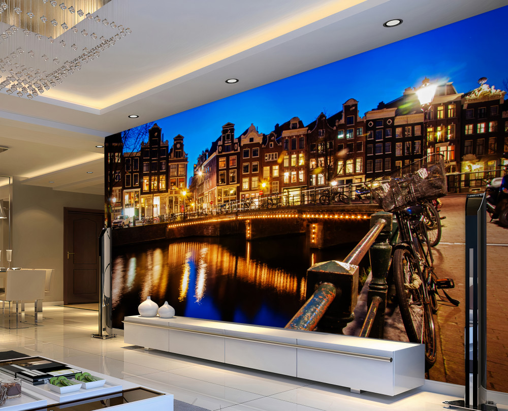 Tapeta Fototapeta Amsterdam nocą odbity w wodzie (artykuł a89465 ) z kategorii Fototapety Miasta i kraje