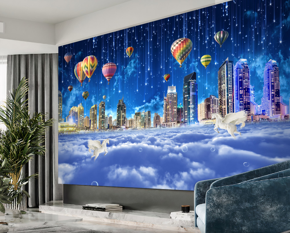 Tapeta Fototapeta balony w nocnym mieście (artykuł a90316 ) z kategorii Fototapety Miasta i kraje