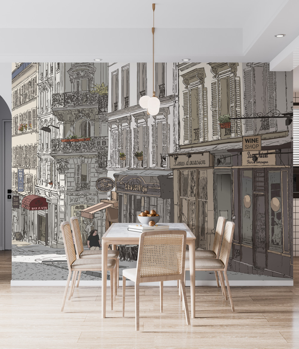 Tapeta Fototapeta Ilustracja przedstawiająca ulicę Montmartre (artykuł a92265 ) z kategorii Fototapety Miasta i kraje