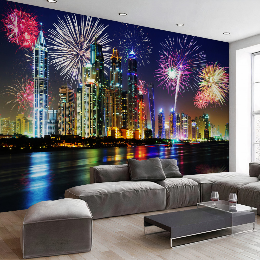 Tapeta Fototapeta kolorowe fajerwerki nad miastem (artykuł a89437 ) z kategorii Fototapety Miasta i kraje