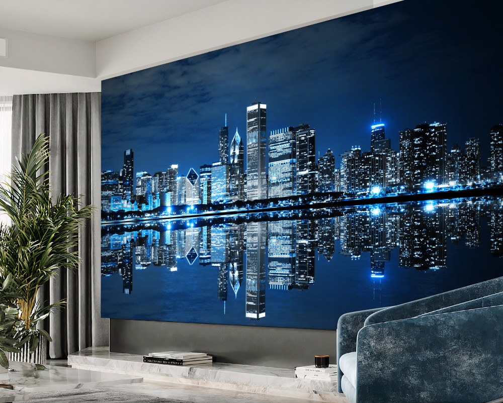 Tapeta Fototapeta nocne światła miasta w odbiciu wody (artykuł a89452 ) z kategorii Fototapety Miasta i kraje