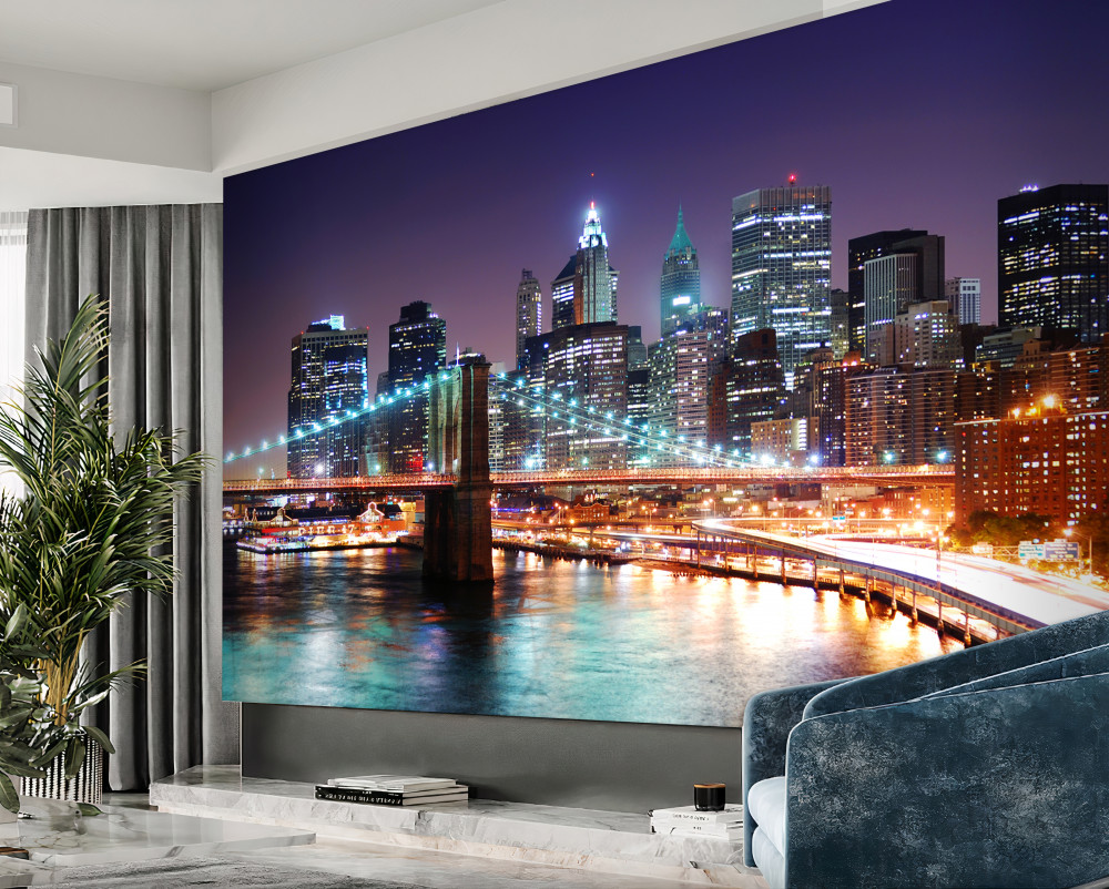 Tapeta Fototapeta nocny krajobraz mostu brooklińskiego (artykuł a90755 ) z kategorii Fototapety Miasta i kraje
