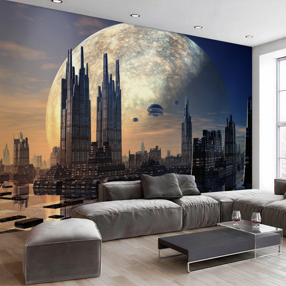 Tapeta Fototapeta pełnia księżyca nad fantastycznym miastem (artykuł a89463 ) z kategorii Fototapety Miasta i kraje
