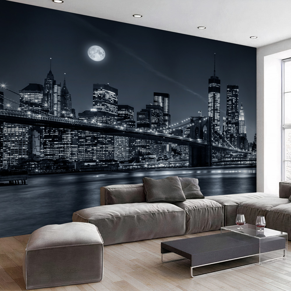 Tapeta Fototapeta pełnia księżyca nad Nowym Jorkiem czarno-biała (artykuł a89494 ) z kategorii Fototapety Miasta i kraje