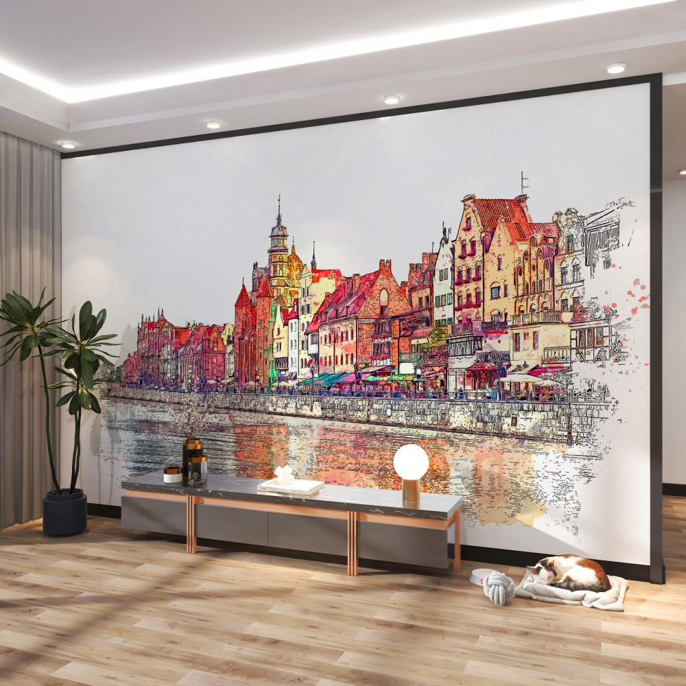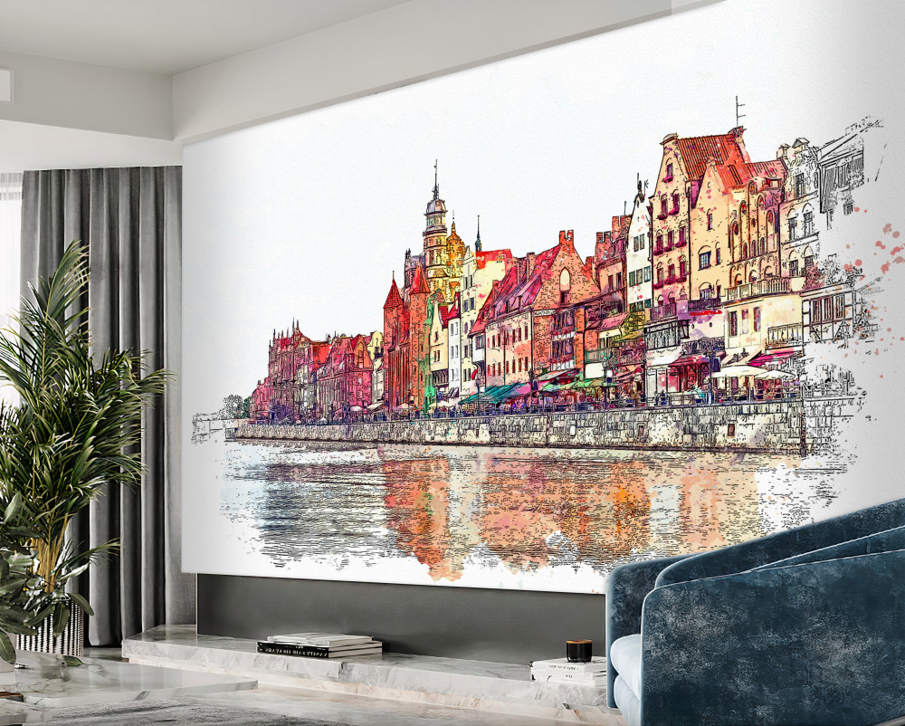Tapeta Fototapeta piękny pejzaż miejski w odbiciu w wodzie (artykuł a93414 ) z kategorii Fototapety Miasta i kraje