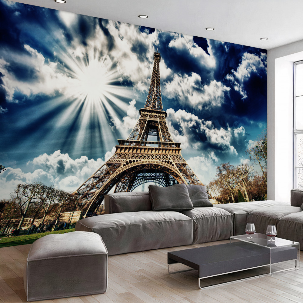 Tapeta Fototapeta promienie słońca nad wieżą Eiffla (artykuł a89420 ) z kategorii Fototapety Miasta i kraje