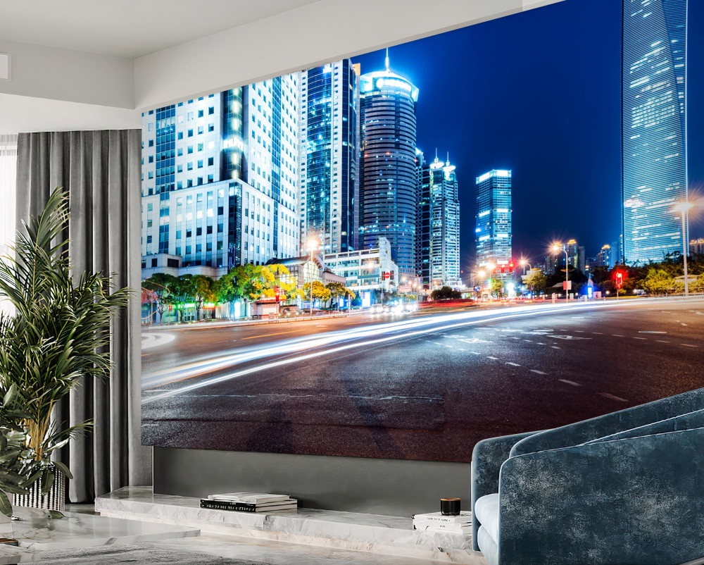 Tapeta Fototapeta pusta droga w nocnym mieście (artykuł a89474 ) z kategorii Fototapety Miasta i kraje