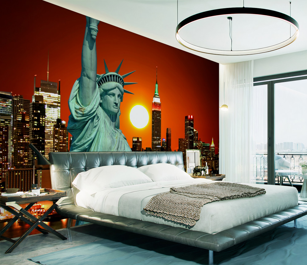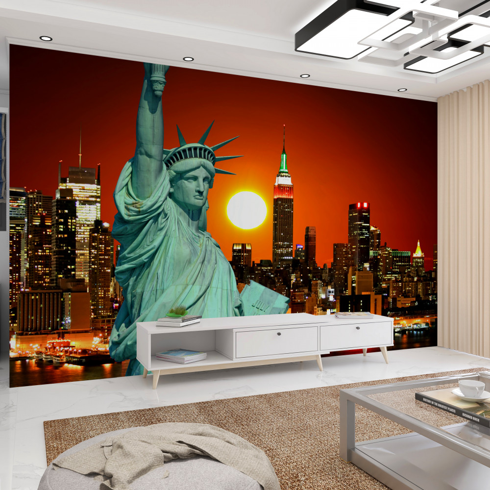 Tapeta Fototapeta statua wolności o zachodzie słońca (artykuł a92902 ) z kategorii Fototapety Miasta i kraje
