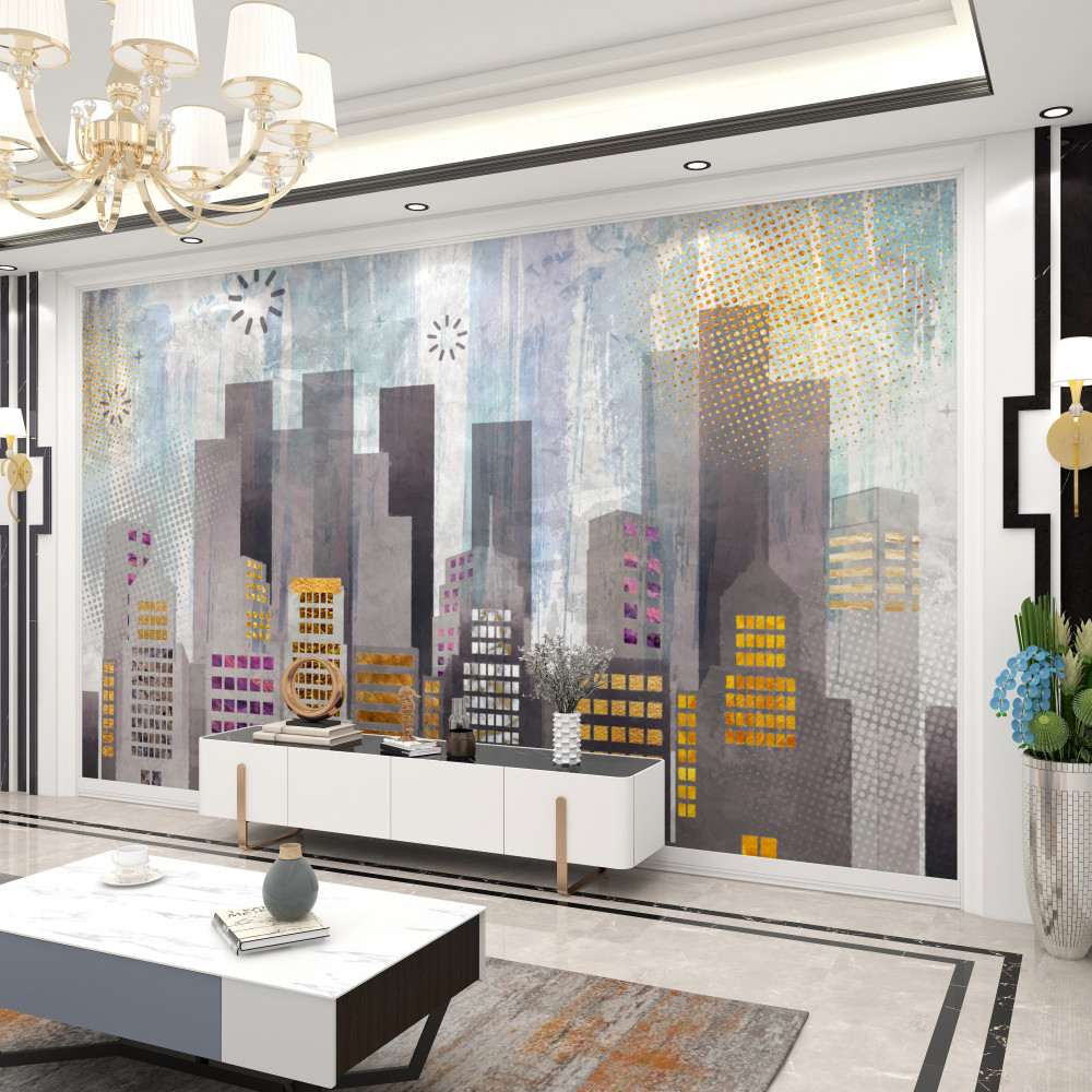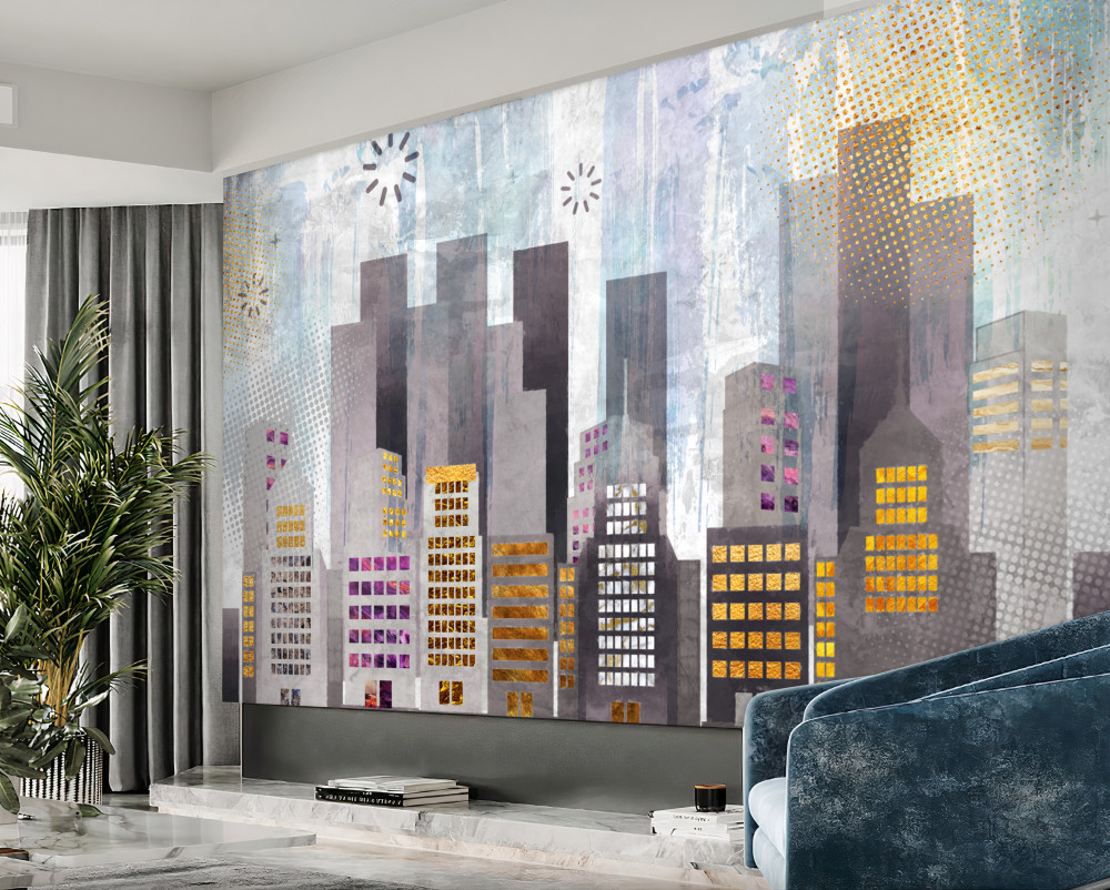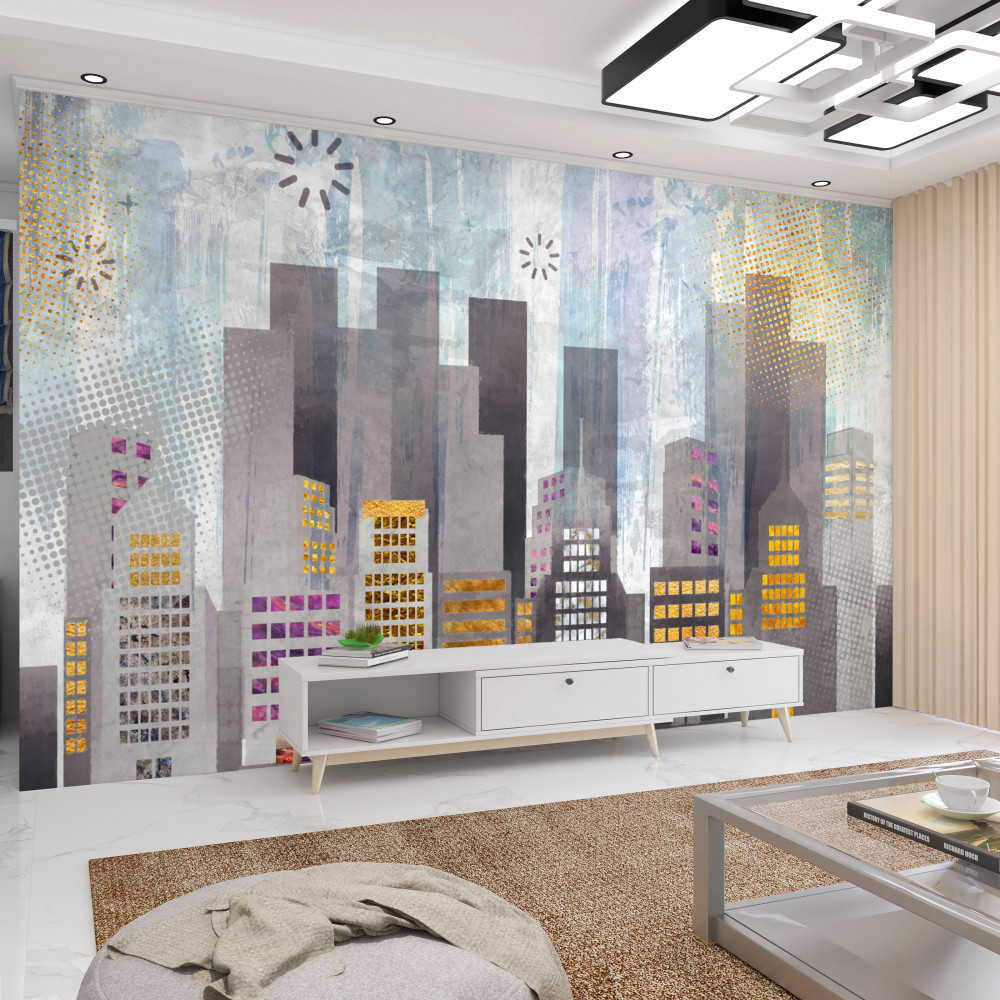 Tapeta Fototapeta szare miasto ze złotymi światłami (artykuł a91676 ) z kategorii Fototapety Miasta i kraje
