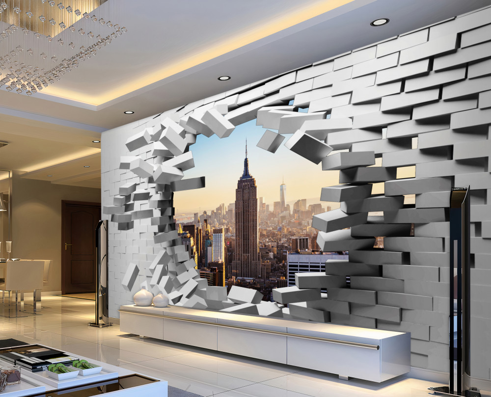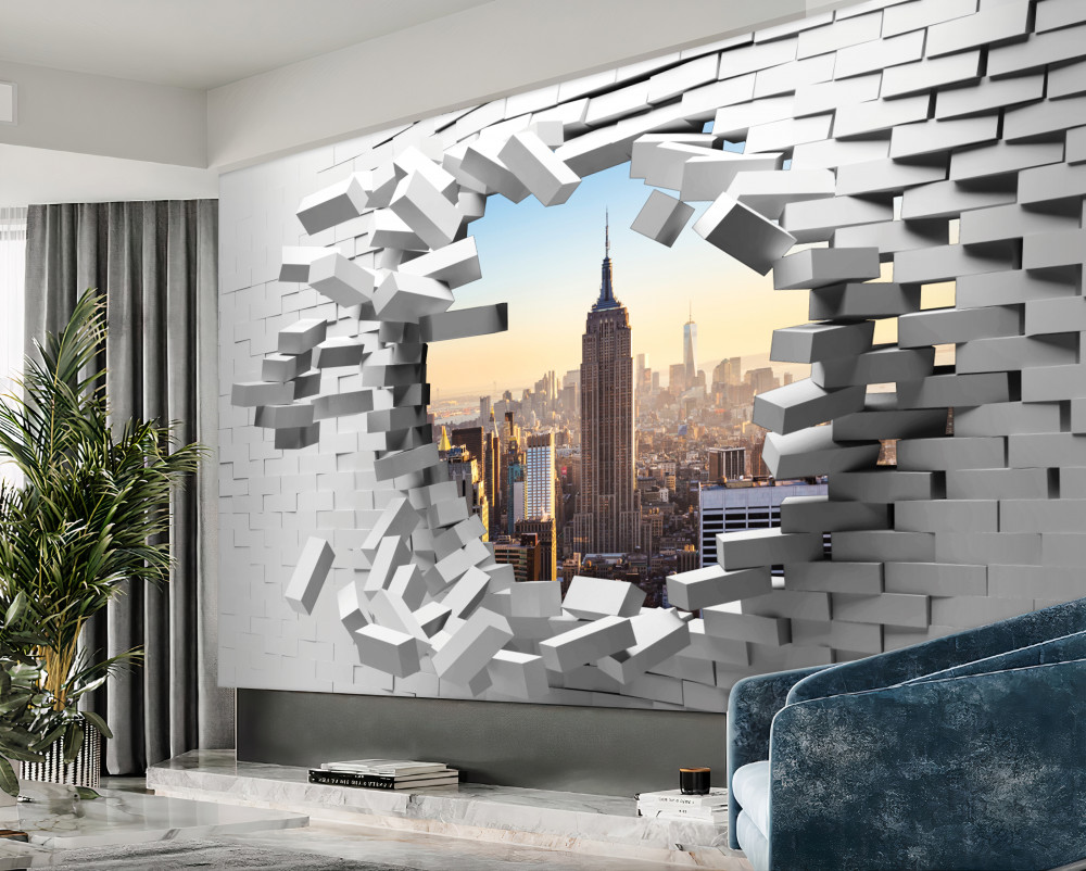Tapeta Fototapeta Widok na Empire State Building w połamanej ścianie (artykuł a88386 ) z kategorii Fototapety Miasta i kraje