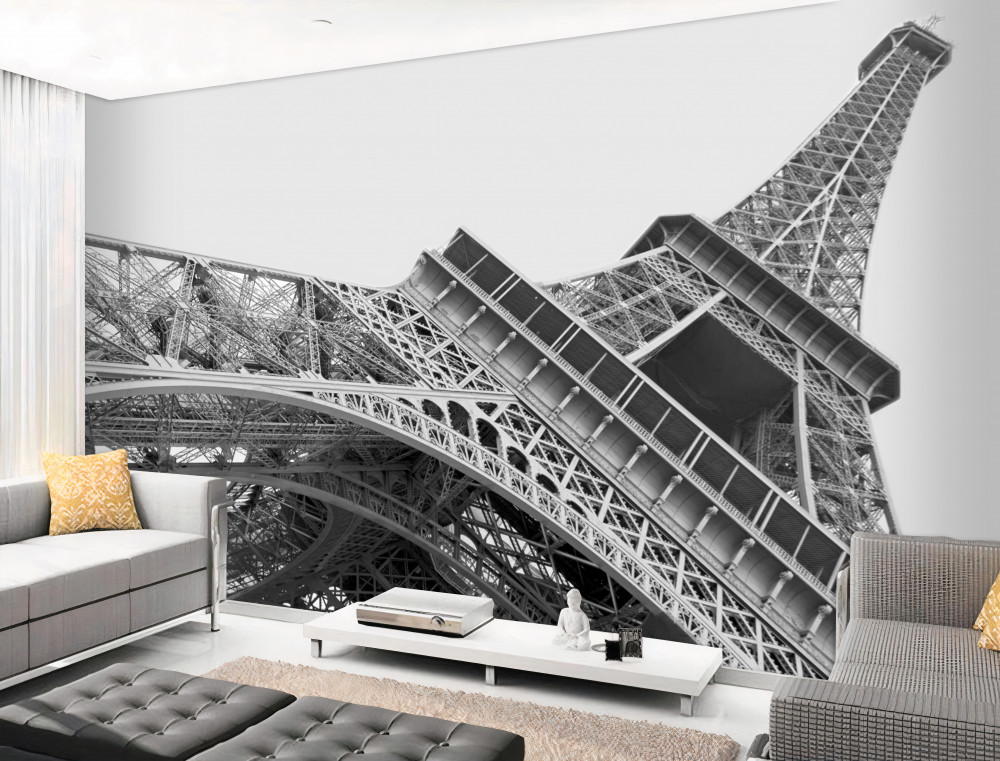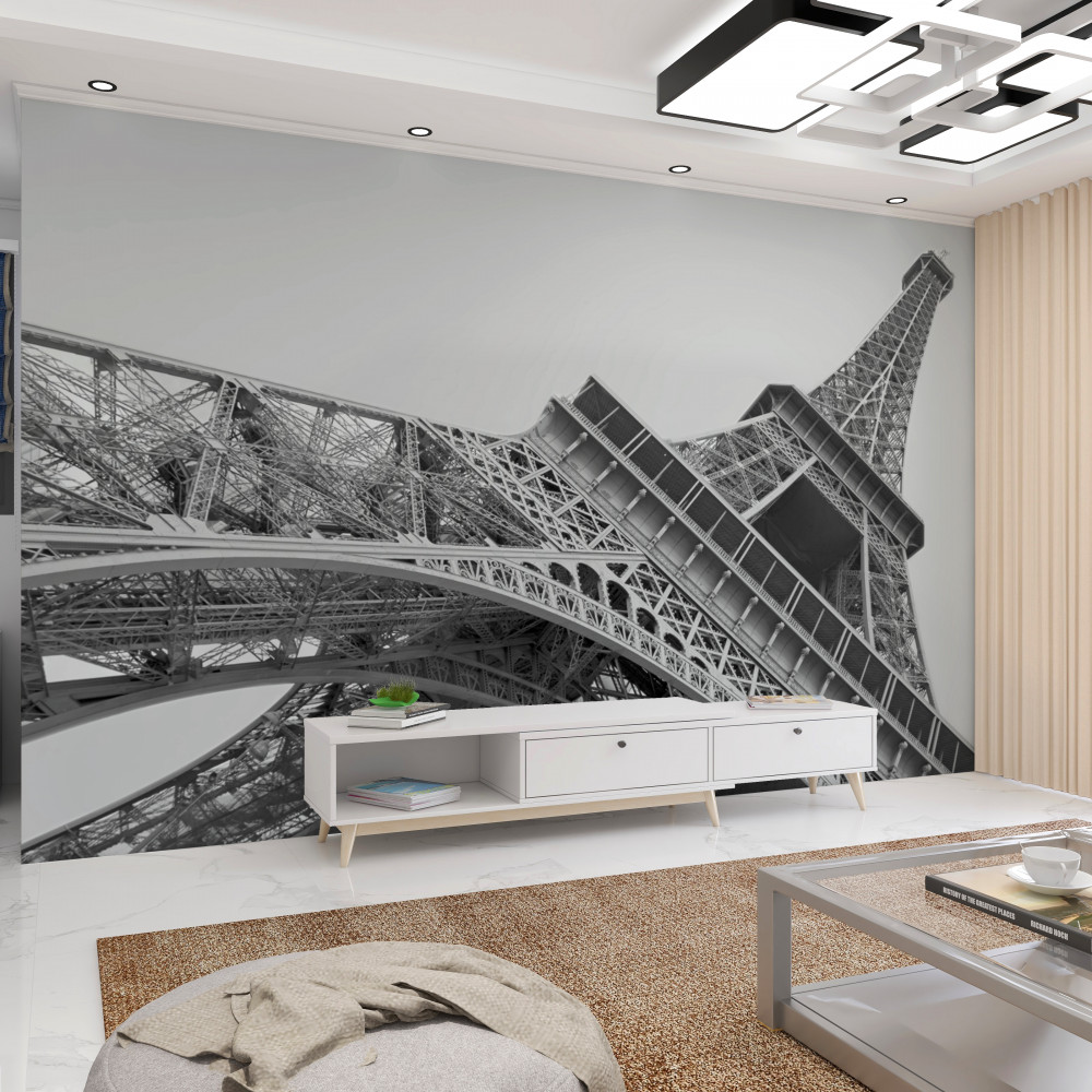 Tapeta Fototapeta Wieża Eiffla od dołu w czerni i bieli (artykuł a91235 ) z kategorii Fototapety Miasta i kraje