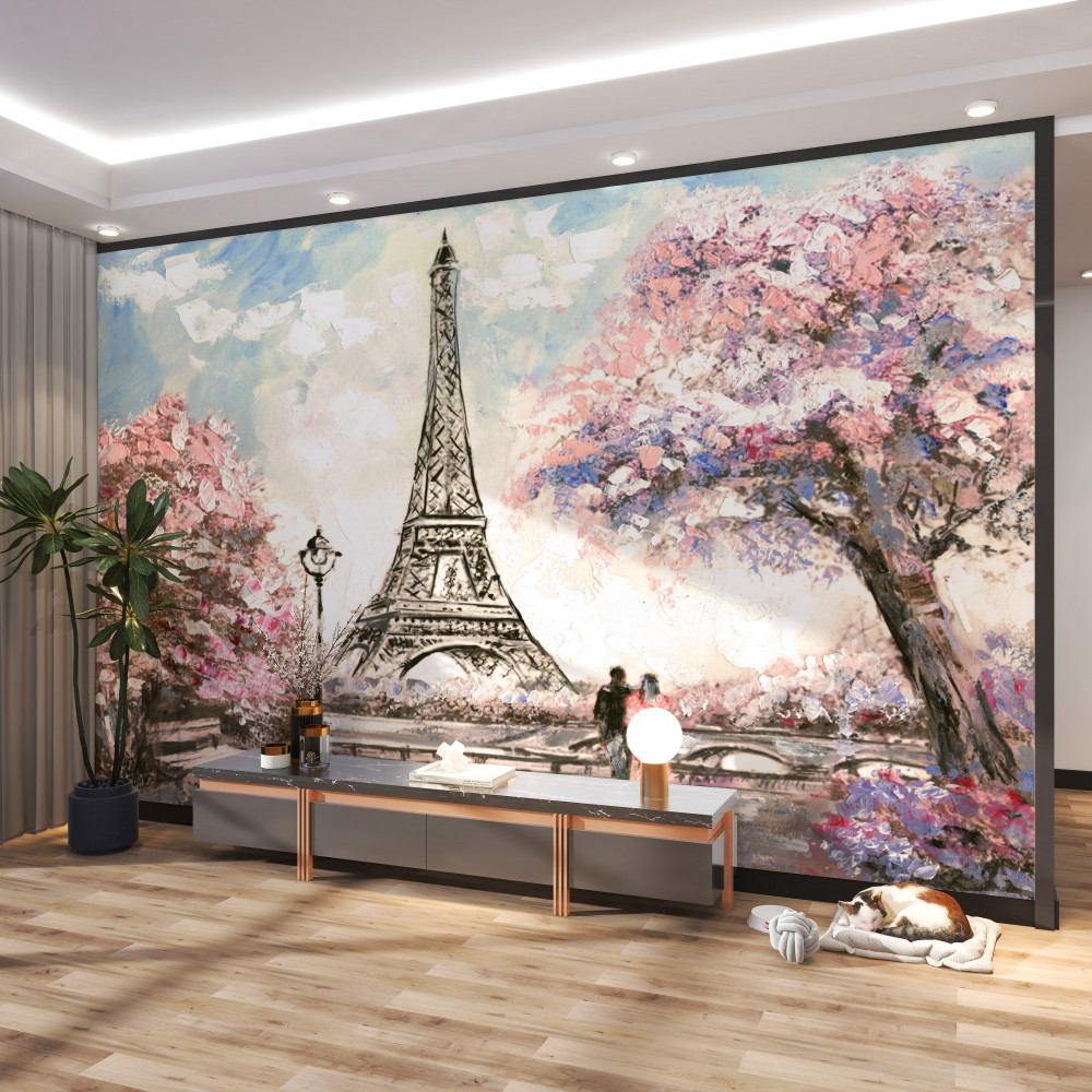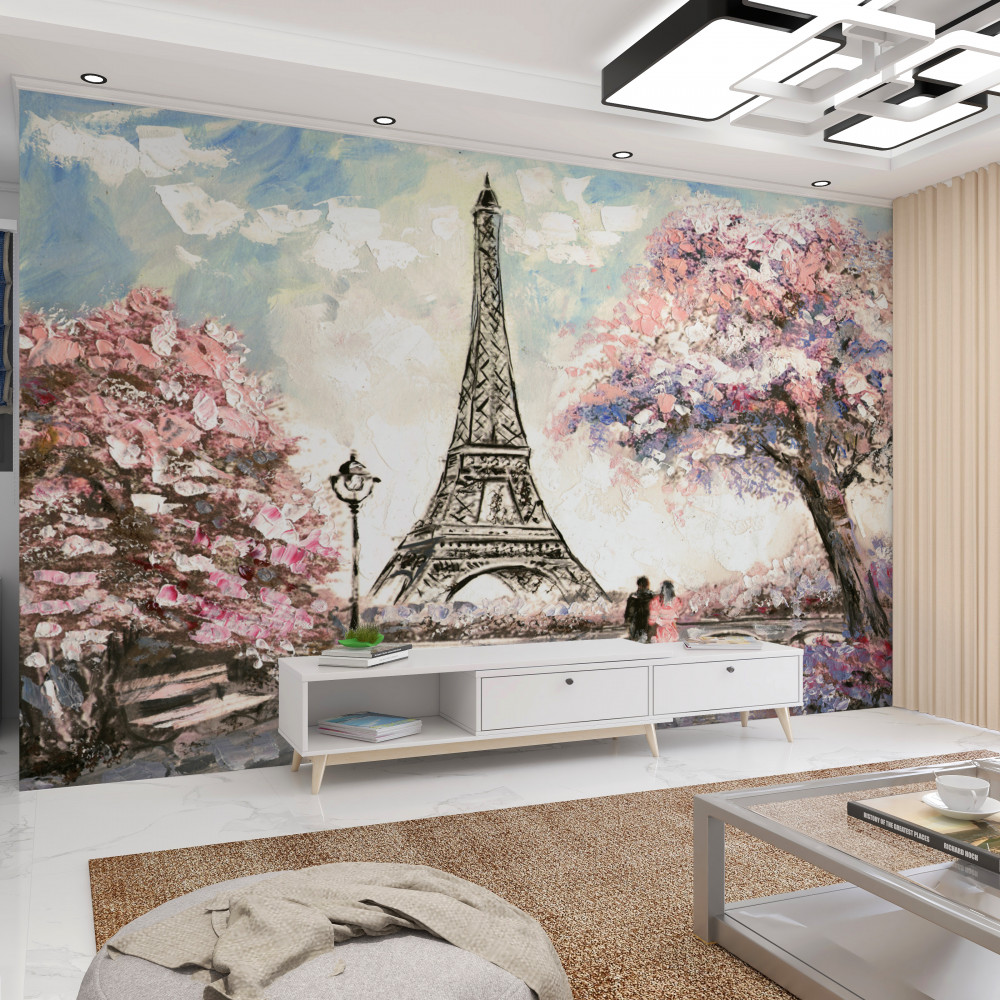 Tapeta Fototapeta wiosenna miłość w pobliżu Wieży Eiffla (artykuł a89496 ) z kategorii Fototapety Miasta i kraje