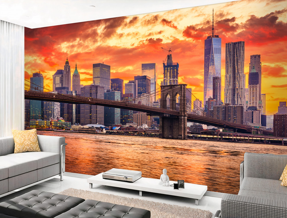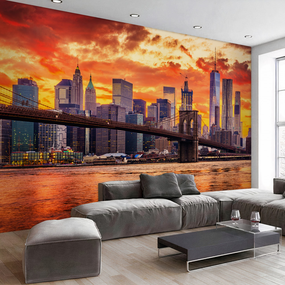 Tapeta Fototapeta zachód słońca z chmurami nad Nowym Jorkiem (artykuł a89408 ) z kategorii Fototapety Miasta i kraje