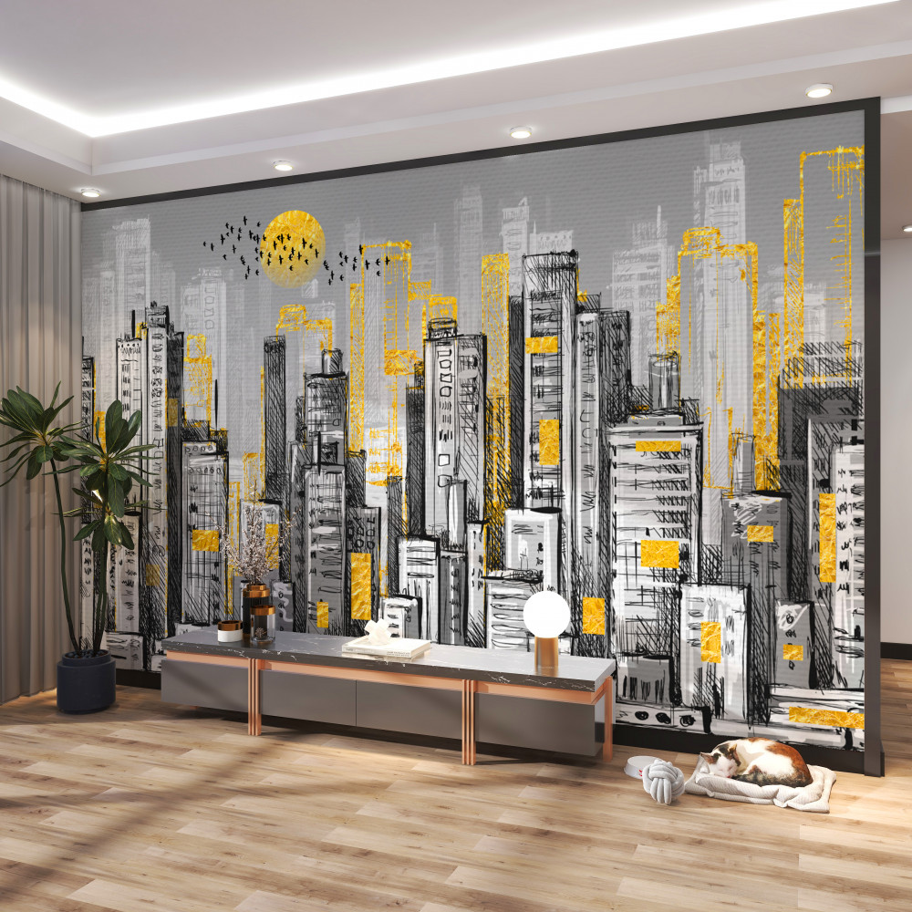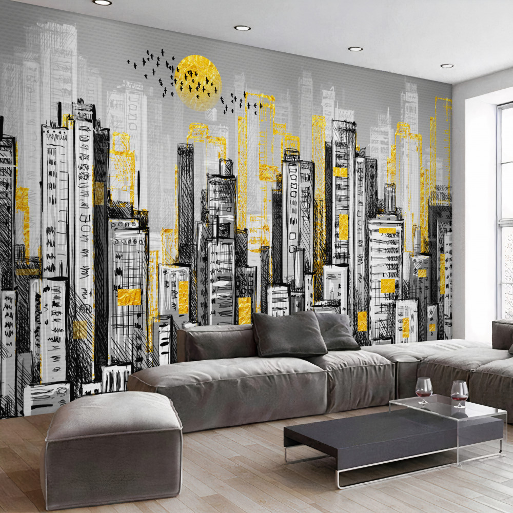 Tapeta Fototapeta żółty zachód słońca nad szarym miastem (artykuł a91755 ) z kategorii Fototapety Miasta i kraje