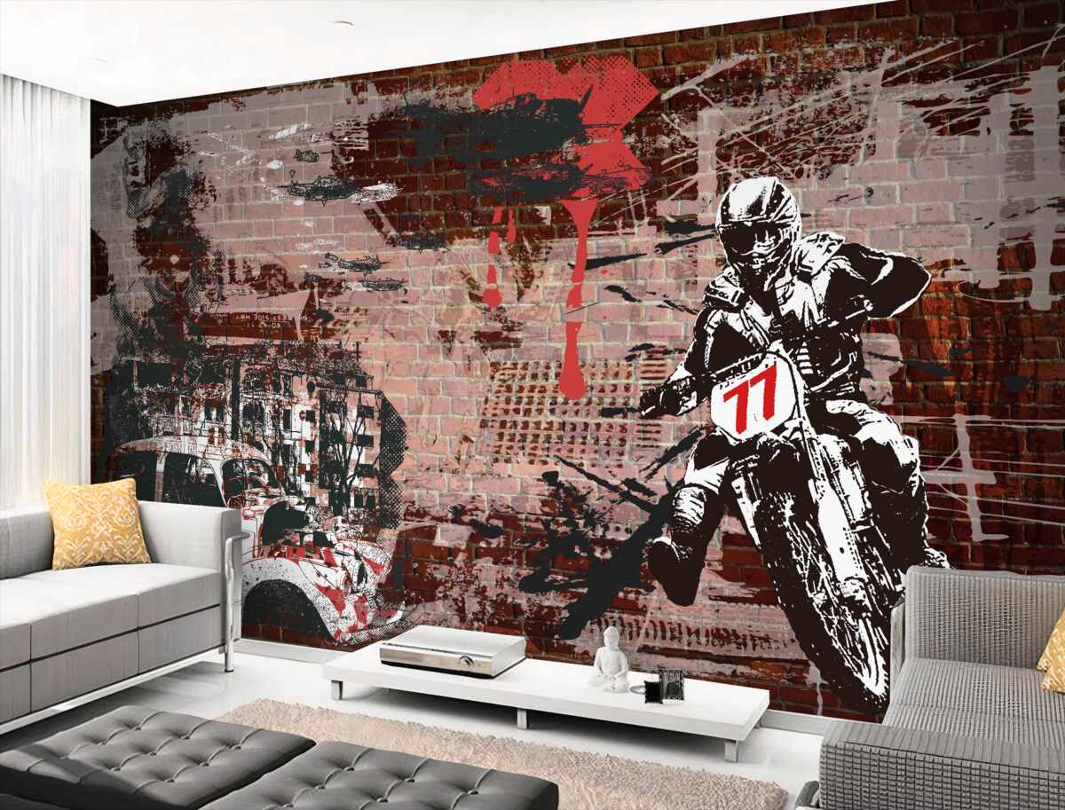 Tapeta Fototapeta Motocyklista na rowerze (artykuł a98961 ) z kategorii Fototapety Młodzieżowe