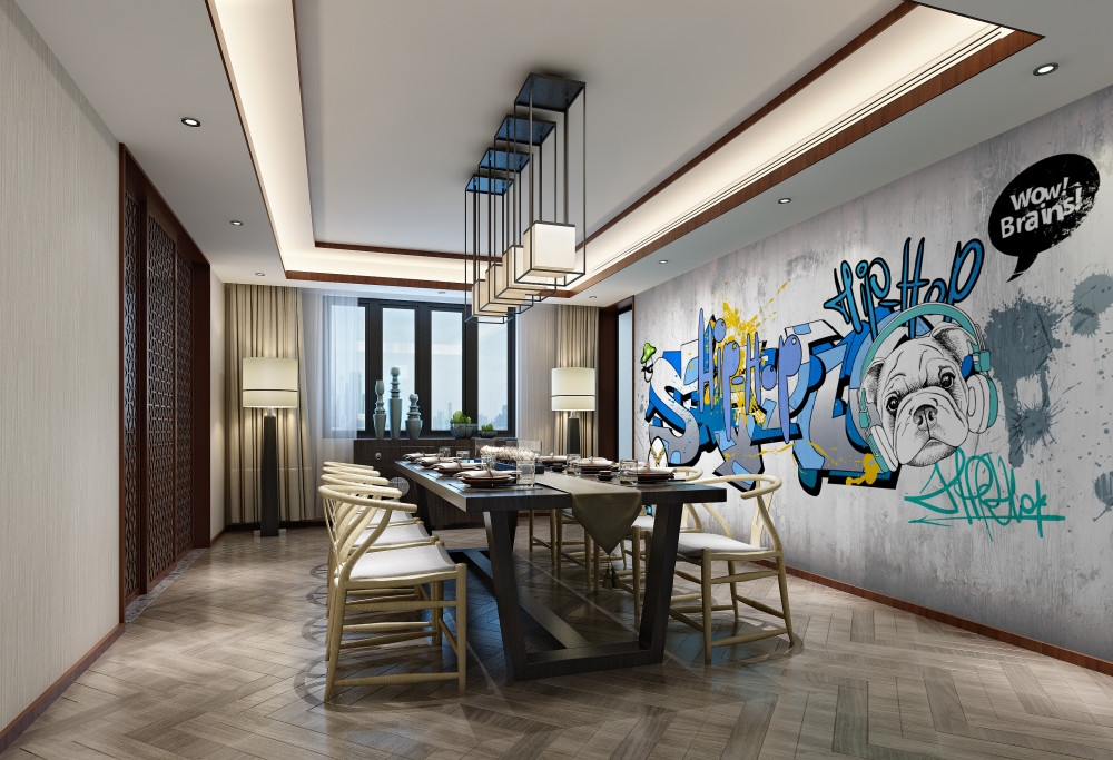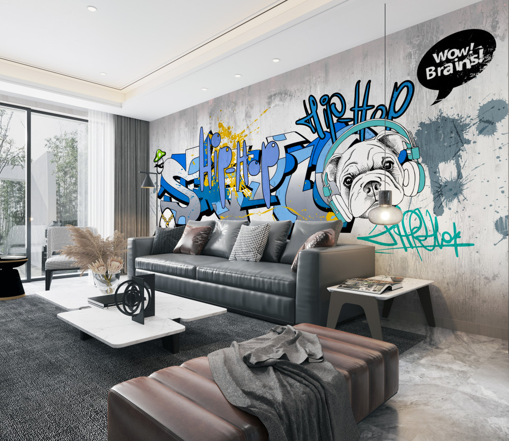 Tapeta Fototapeta pies z graffiti ze słuchawkami (artykuł a94298 ) z kategorii Fototapety Młodzieżowe