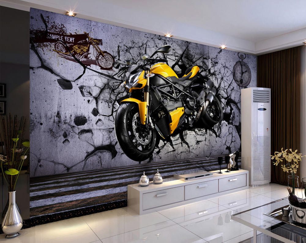 Tapeta Fototapeta żółty motocykl na graffiti (artykuł a90379 ) z kategorii Fototapety Młodzieżowe
