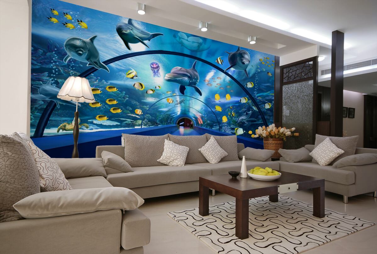 Tapeta Fototapeta Delfiny i ryby w akwarium (artykuł a94085 ) z kategorii Fototapety Morze i plaża