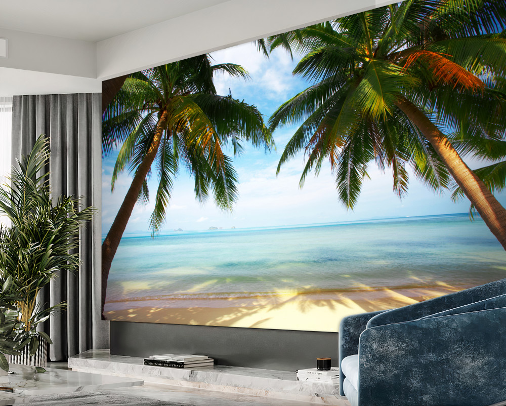 Tapeta Fototapeta dwie palmy na brzegu (artykuł a93038 ) z kategorii Fototapety Morze i plaża