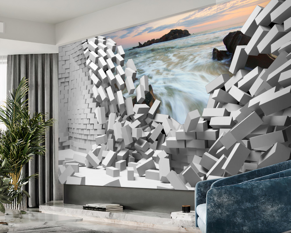 Tapeta Fototapeta fale przełamują abstrakcję ściany (artykuł pb5597 ) z kategorii Fototapety Morze i plaża