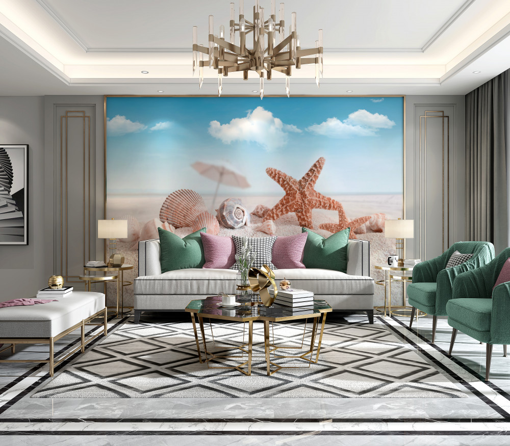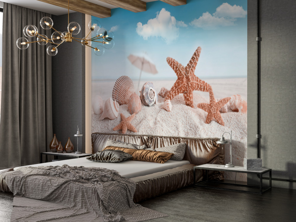 Tapeta Fototapeta muszle na piaszczystej plaży (artykuł a91804 ) z kategorii Fototapety Morze i plaża