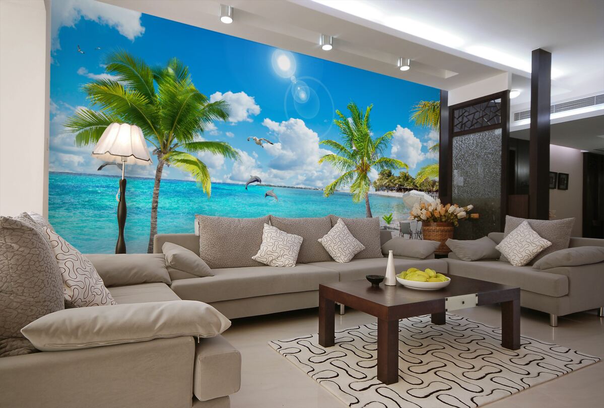 Tapeta Fototapeta Piaszczysta plaża z palmami (artykuł a90016 ) z kategorii Fototapety Morze i plaża