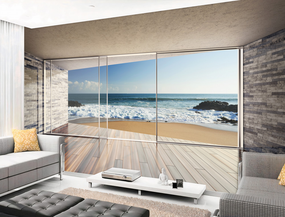 Tapeta Fototapeta widok na morze z panoramicznych okien (artykuł a93162 ) z kategorii Fototapety Morze i plaża