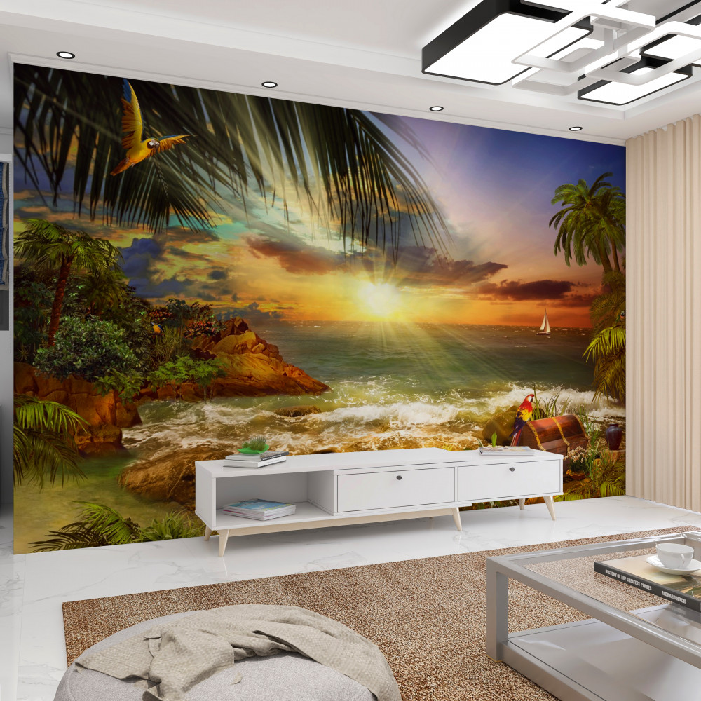 Tapeta Fototapeta widok na zachód słońca z bezludnej wyspy (artykuł a93614 ) z kategorii Fototapety Morze i plaża