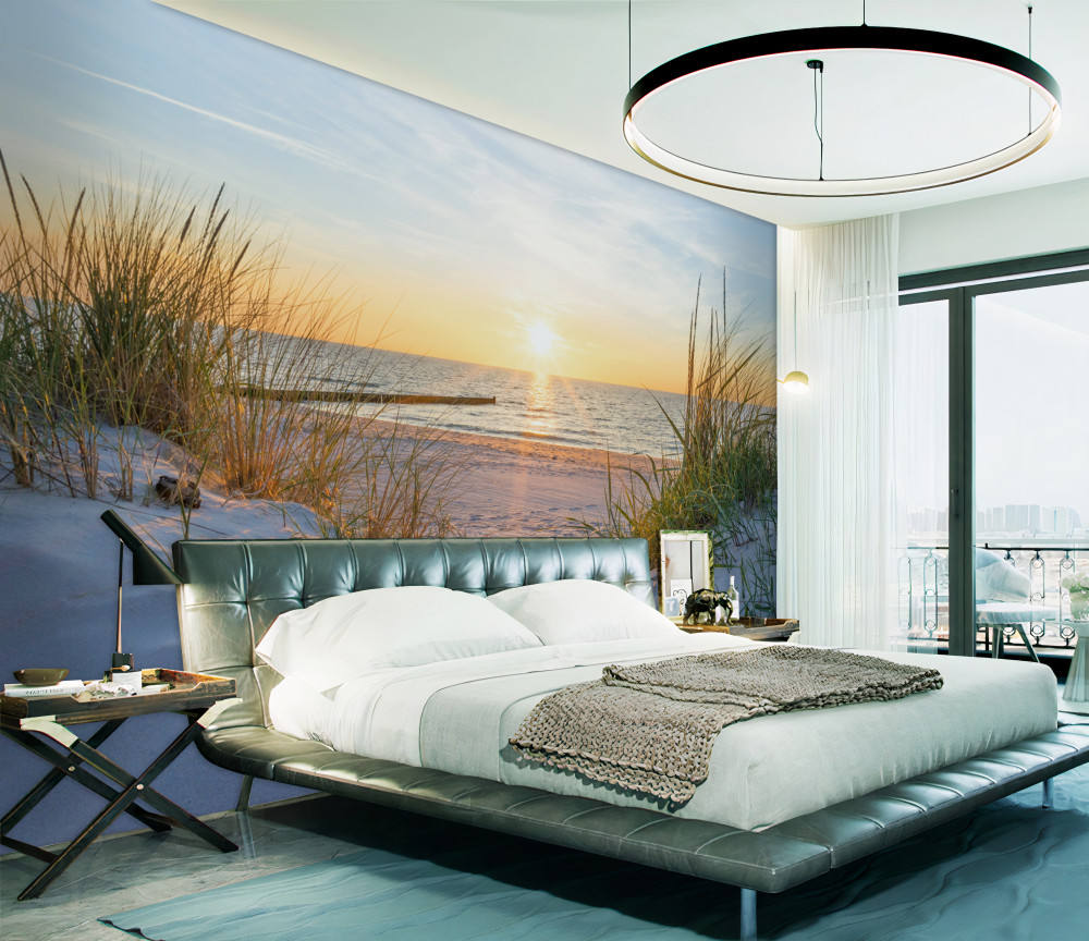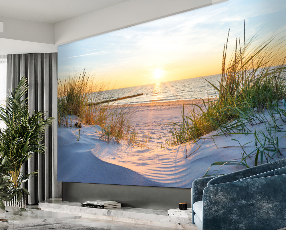 Tapeta Fototapeta zielona trawa na piaszczystej plaży (artykuł a92769 ) z kategorii Fototapety Morze i plaża