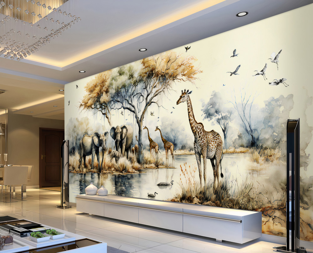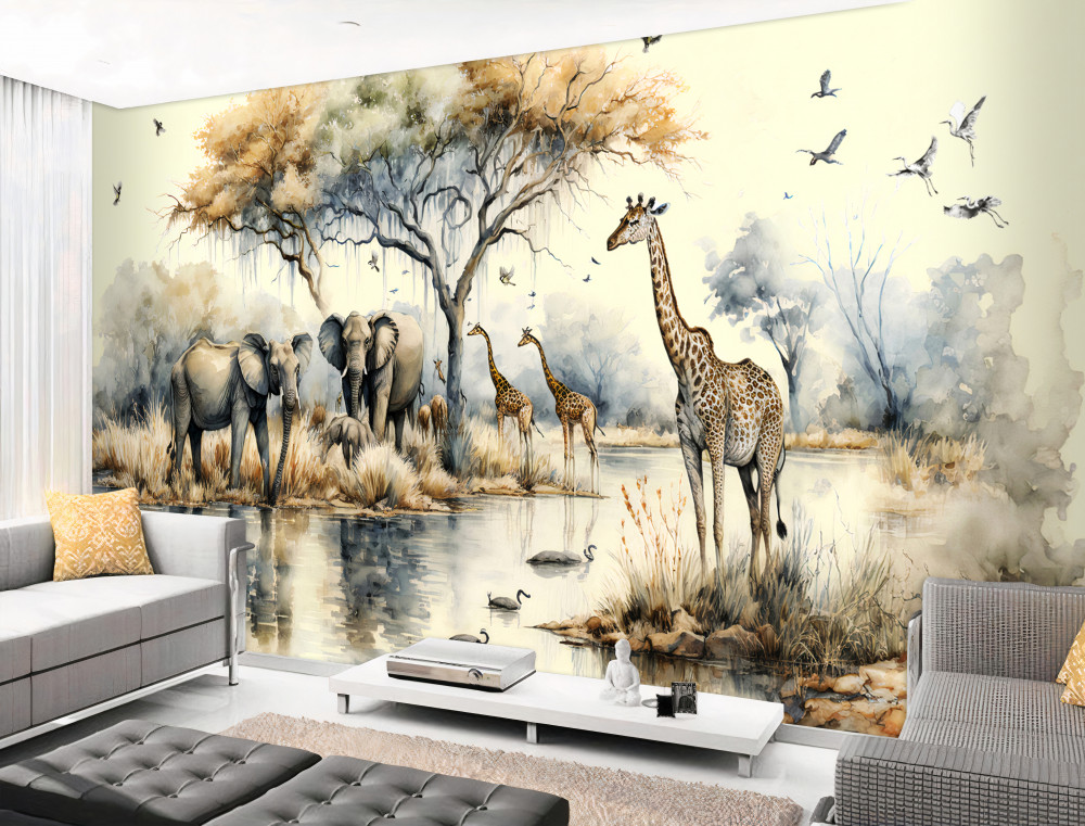 Tapeta Fototapeta Afrykańskie zwierzęta przy wodopoju (artykuł a89229 ) z kategorii Fototapety Natura