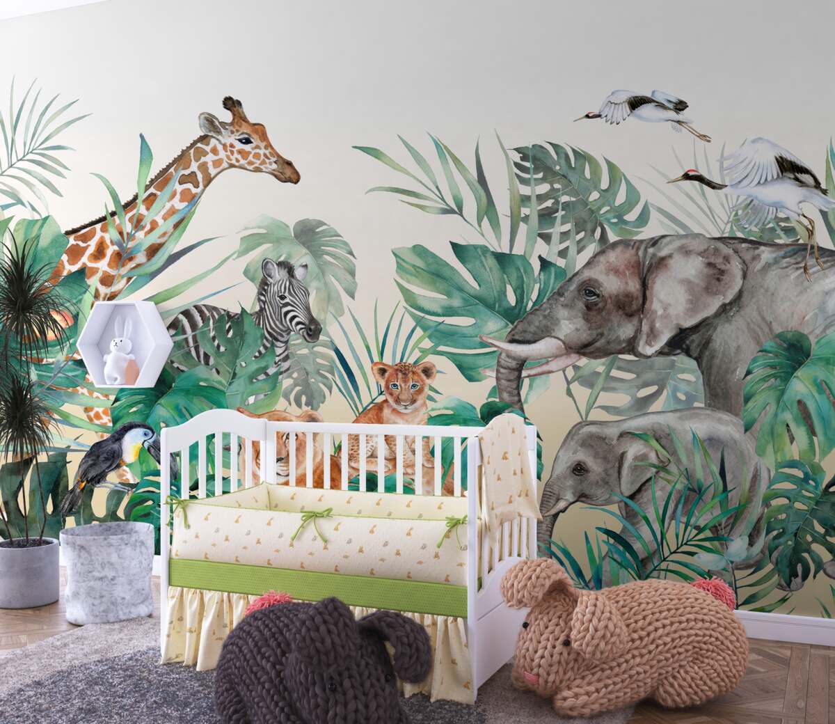 Tapeta Fototapeta Afrykańskie zwierzęta wśród zielonych liści (artykuł a89878 ) z kategorii Fototapety Natura