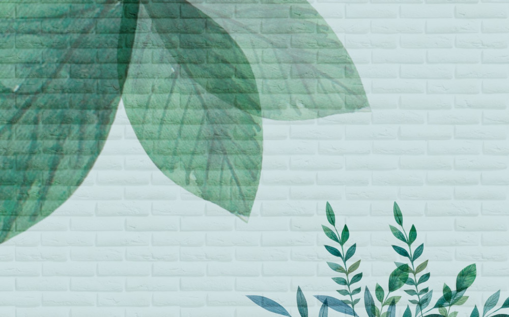 Tapeta Fototapeta akwarela zielone liście na cegle (artykuł a91921 ) z kategorii Fototapety Natura